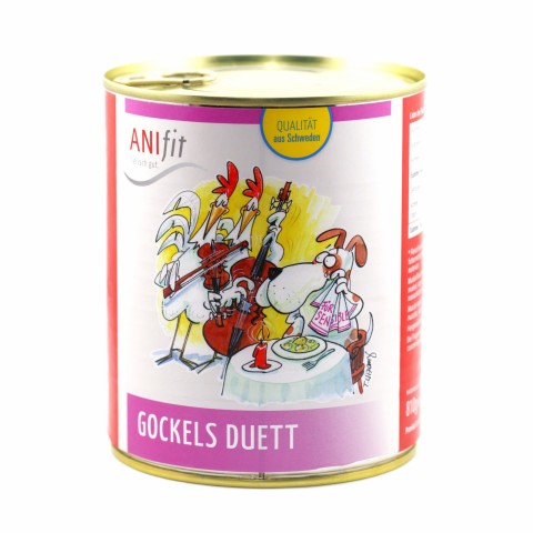 Gockel’s Duett von ANIfit ist ein hochwertiges Nassfutter für Hunde mit einem Fleischanteil von über 90 Prozent. Die Rezeptur setzt ausschließlich auf Huhn als tierische Proteinquelle und eignet sich damit hervorragend für Hunde mit Futtermittelunverträglichkeiten oder Hunden mit Durchfall. Frei von Getreide, Gluten, Zuckerzusätzen und künstlichen Konservierungsstoffen bietet das Menü eine artgerechte, natürliche Ernährung für Hunde aller Rassen und Altersklassen.